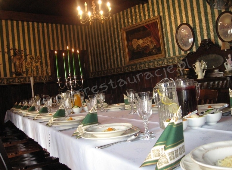 Doskonałe jedzenie to tylko jeden z wielu atutów tego miejsca. Nasz Szef Kuchni zadowoli najbardziej wyrafinowane, kulinarne gusta, a miła atmosfera czynią restaurację idealnym miejscem spotkań rodzinnych i towarzyskich. Do Państwa dyspozycji są dwie klimatyzowane sale na 60 i 30 osób. Sale te można połączyć rozsuwaną ścianą, co umożliwi zabawę taneczną do 70 osób, spotkania siedzące do 90 osób. Wszystkim imprezom zapewniamy niepowtarzalne dekoracje sali i stołów.