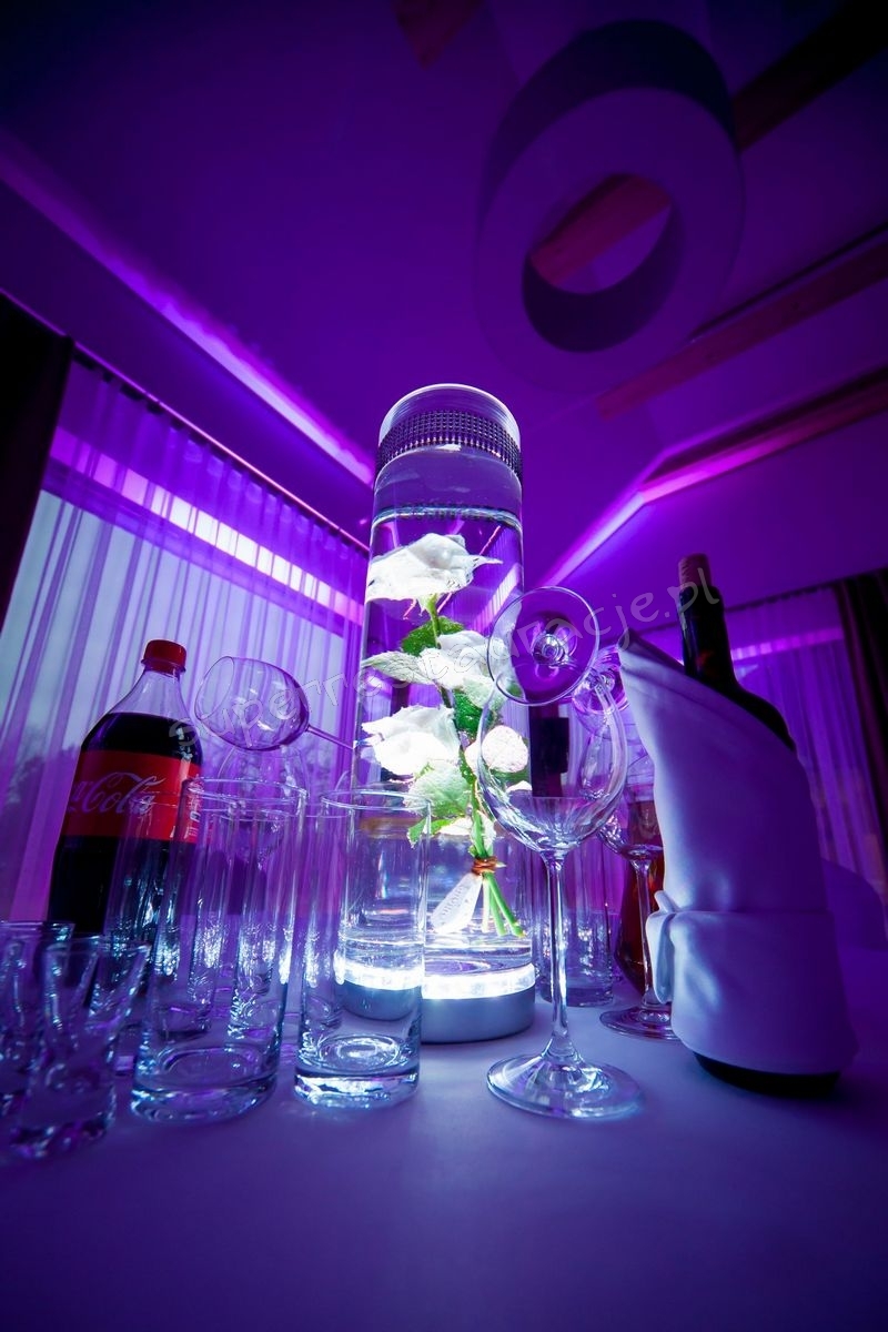 Proponujemy przyjęcia/ spotkania w układzie tradycyjnym przy złączonych stołach lub przy stołach bankietowych.