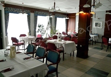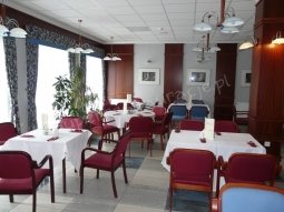 Klimatyzowana restauracja z doskonałą kuchnią; specjalność lokalu: potrawy z ryb i dziczyzny.