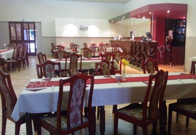 Liczba miejsc: 120. Restauracja czynna jest codziennie w godzinach od 12:00 do 20:00. Na życzenie gości posiłki dostarczane są do pokoju. Oferujemy zróżnicowane menu (tradycyjna kuchnia polska, włoska i inne) a także dania dla diabetyków czy wegetariańskie.