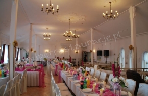 Przestronna i gustownie udekorowana sala pałacowa, zdolna pomieścić do 200 osób, gwarantuje swobodę i komfort wolnej przestrzeni. Oddzielna, przestronna sala lustrzana daje możliwość wykazania się zdolnościami tanecznymi - dla nikogo nie zabraknie miejsca. Zapewniamy wysoki poziom świadczonych usług. Zaspokoimy najbardziej wyszukane gusta serwując firmowe dania i przekąski.