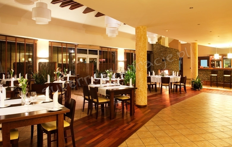 Restauracja Hotelowa posiada w swojej karcie dania mięsne, jarskie a także rybne. Bazuje przede wszystkim na świeżych produktach z regionu Warmii i Mazur. Taras z widokiem na jezioro.