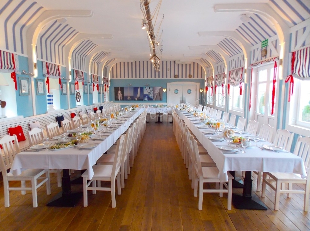 Restauracja Kapitańska to wyjątkowe miejsce z przepięknym widokiem na przystań jachtową i Jezioro Zegrzyńskie. Do Restauracji przynależy letni taras, na którym można delektować się posiłkami na świeżym powietrzu, a także całoroczna oranżeria z widokiem na marinę i jezioro. Szeroki wybór smacznych dań oraz atrakcyjne ceny zadowolą naszych Gości.