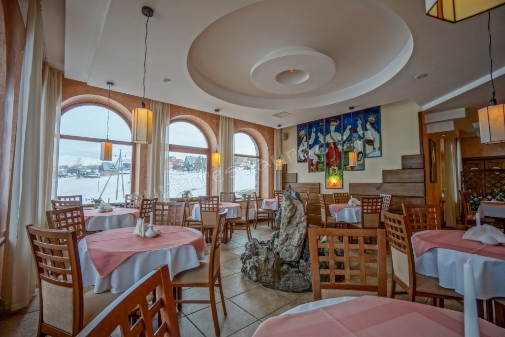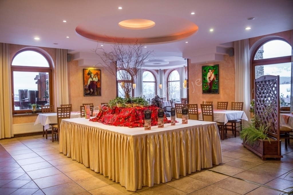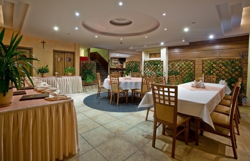 Dodatkowo regionalne obrazy malowane na szkle, panorama Tatr rozciągająca się z okien oraz szum fontanny sprawiają, że zarówno kolacja w gronie znajomych, rodzinna impreza czy spotkanie biznesowe odbywają się w ciepłej i przyjemnej atmosferze.
