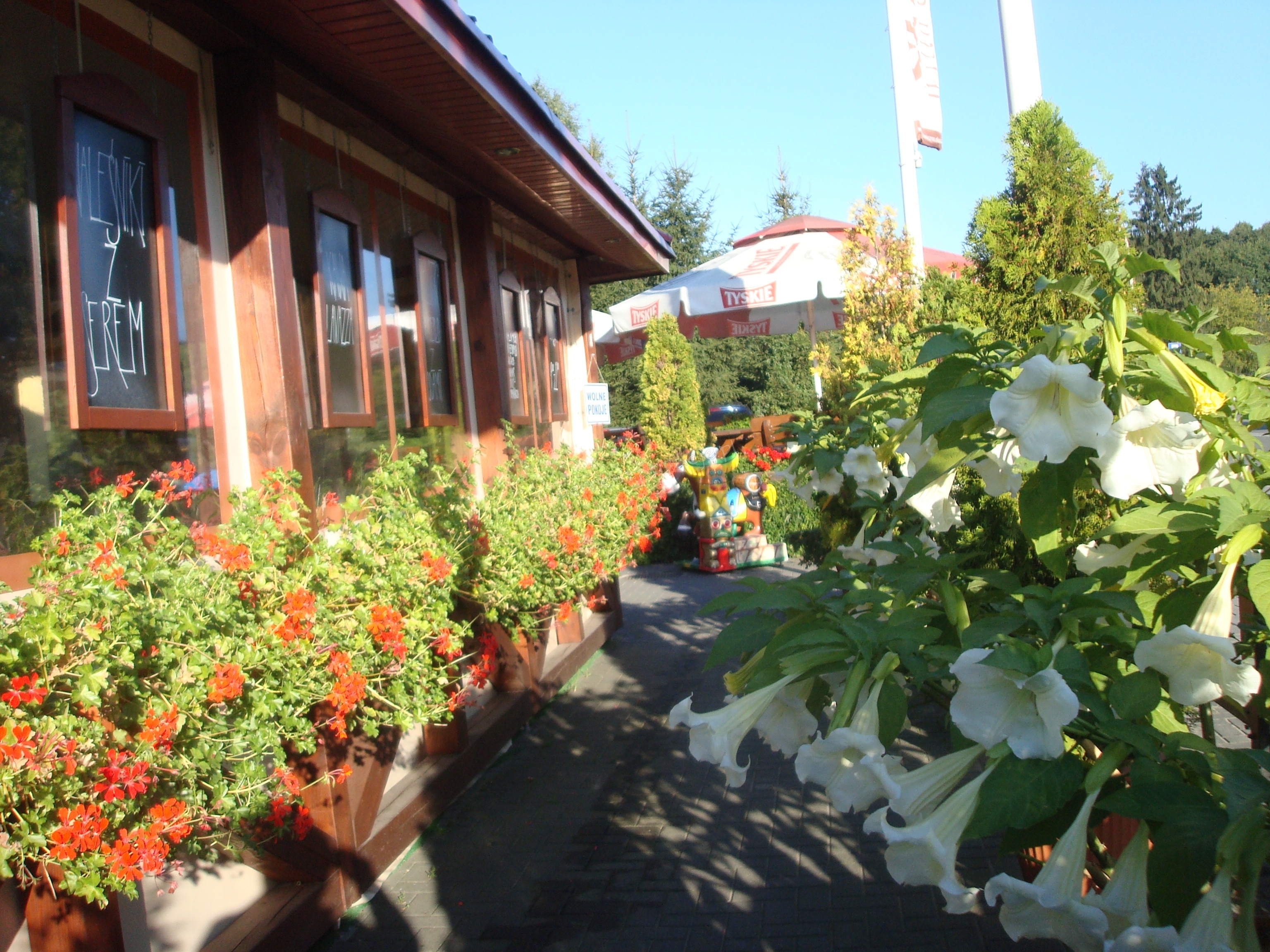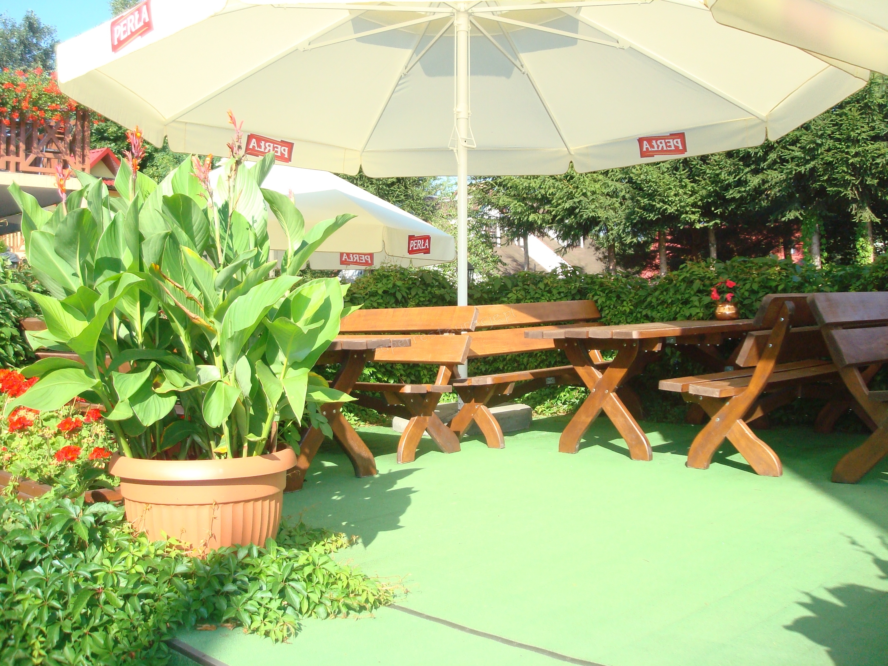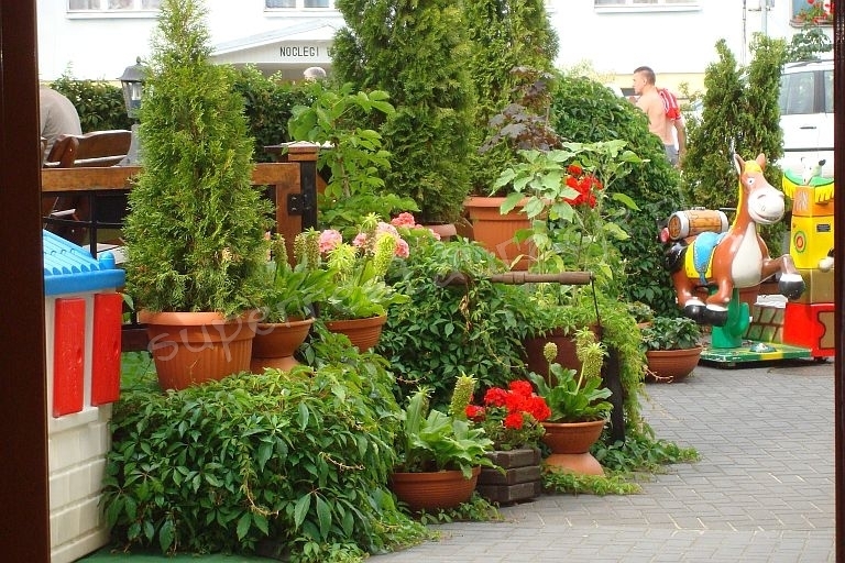 Jeżeli wolicie Państwo spożywanie posiłku na świeżym powietrzu mamy ogródek pełen kwiatów i innych roślin ,gdzie w cieniu parasoli